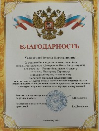 - Почетная грамота Департамента образования Администрации городского округа город Рыбинск за добросовестный труд, использование современных технологий в обучении и воспитании детей дошкоьного возраста, приказ от 06.02.2025 № 053-02-05/15;